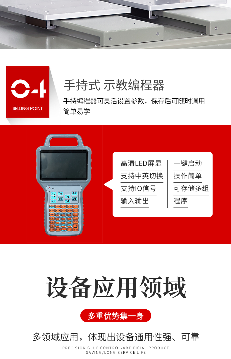 1. 可替代人工的特定點膠作業(yè),實現(xiàn)機械化生產(chǎn)。